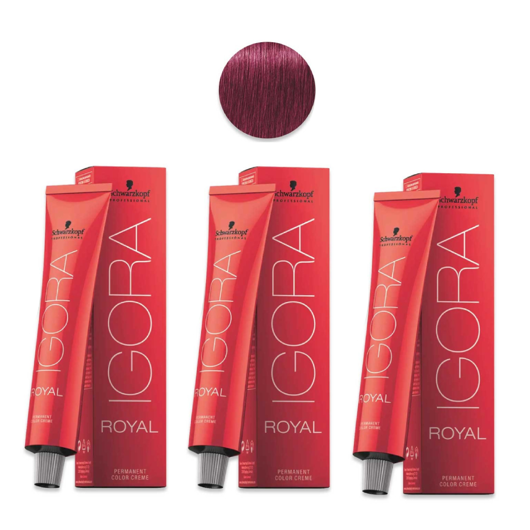 Kit 3 Unidades Igora Royal 0.89 Tom Mistura Vermelho Violeta 60ml – Schwarzkopf